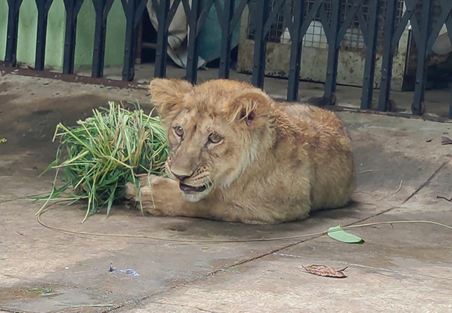 ಮೃಗಾಲಯಕ್ಕೆ ಶ್ರಮದಾನ (ಮೃಗಾಲಯದಲ್ಲಿ ಸೇವೆಗಳ ಕೊಡುಗೆ) ಮೂಲಕ ಸಿಂಹಗಳ ಪುಷ್ಟೀಕರಣದ ಸಲುವಾಗಿ ವನ್ಯಜೀವಿ ಉತ್ಸಾಹಿಗಳು ಮೇವು ಕೊಯ್ಲು ಮಾಡುವ ಮೂಲಕ ತಮ್ಮ ಸೇವೆಯನ್ನು ಕೊಡುಗೆಯಾಗಿ ಪ್ರಾಣಿಪಾಲಕರಿಗೆ ಹಸ್ತಾಂತರಿಸಿದರು.