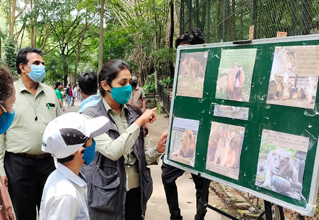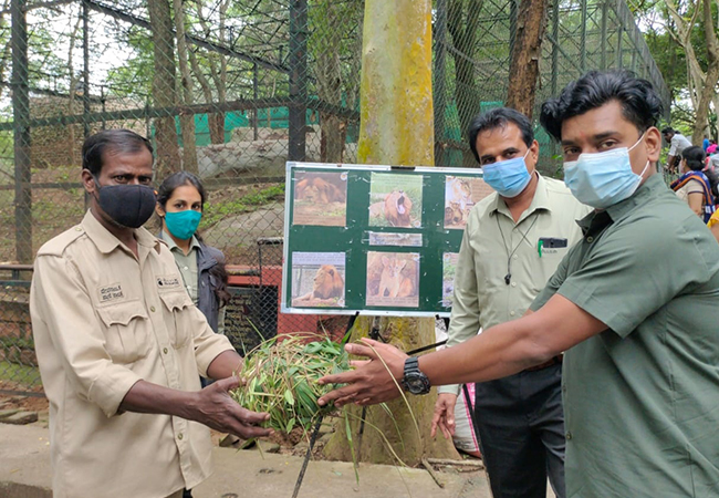 Citizens also contributed towards olfactory enrichment for Lions through Mrugalayakke Shramadhana (ಮೃಗಾಲಯಕ್ಕೆ ಶ್ರಮದಾನ: Donation of Services at Zoo) where wildlife enthusiasts donated their services by harvesting fodder, which was handed over to the animal keeper.