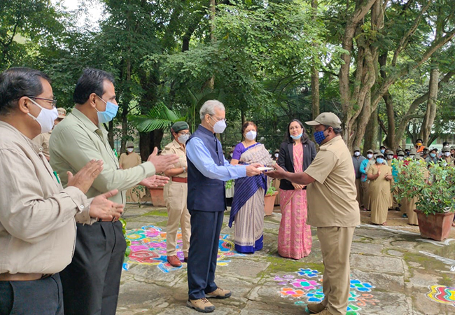 Staff involved in hygiene of the park, recovered from COVID, wildlife rescue operations and animal management operations were rewarded.
