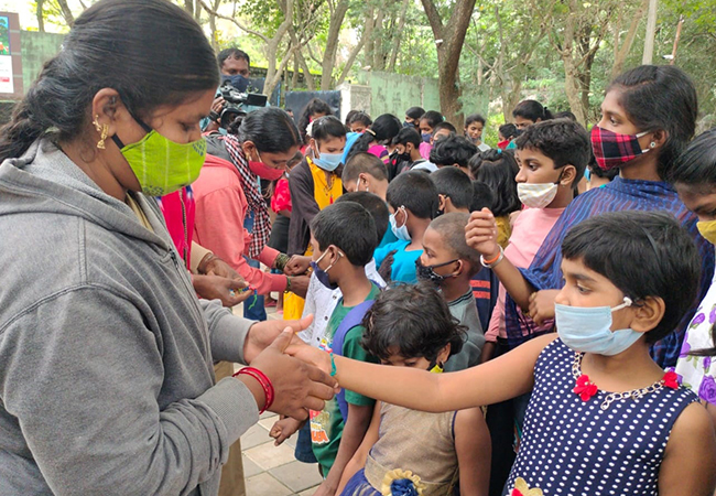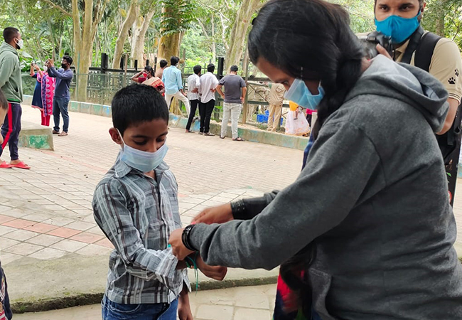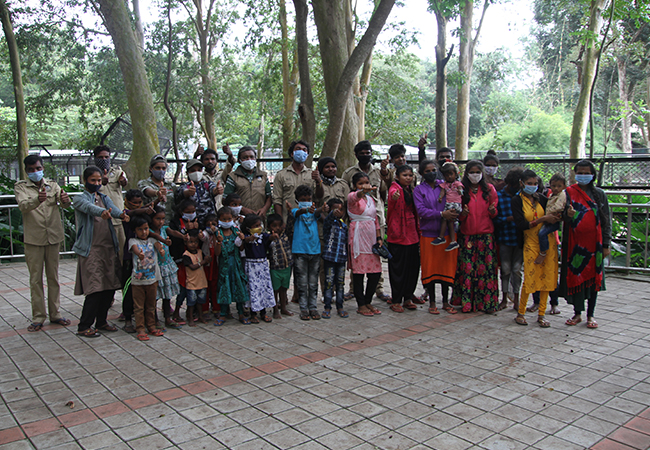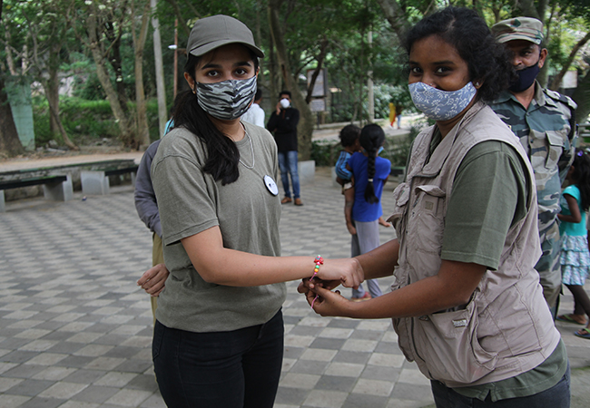 55 students from SOS Children's village took part in the awareness creation session along with visitors to learn about these gentle giants, their management at BBP, threats they face in the wild and need to conserve these endangered species. Post learning about elephants, visitors took the wildlife pledge and a Elephant Friendship Band, which was made by elephant mahouts families, were tied to the visitors by them.