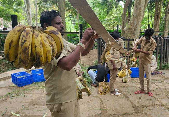 The celebrations commenced with citizens and wildlife enthusiasts providing their services to the zoo in the form of fodder harvesting through Mrugalayakke Shramadhana ಮೃಗಾಲಯಕ್ಕೆ ಶ್ರಮದಾನ: Donation of Services at Zoo. The harvested fodder was fed to the elephants by the mahouts.