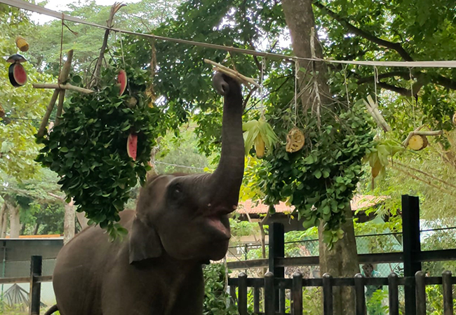 Further, the elephants received enrichment of various fruits and vegetables along with browse which were provided in a way which encourages their browsing behavior. Treats were also placed in a pipe, where the elephants had to retrieve it using their trunk.