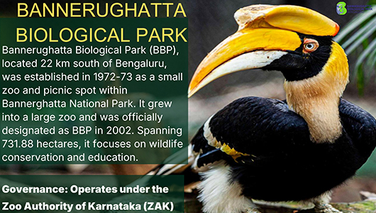 ಬನ್ನೇರುಘಟ್ಟ ಜೈವಿಕ ಉದ್ಯಾನವನವು (ಬಿಬಿಪಿ) ಕರ್ನಾಟಕ ಮೃಗಾಲಯ ಪ್ರಾಧಿಕಾರದ ಒಂದು ಘಟಕವಾಗಿದ್ದು, ಜಾಗತಿಕವಾಗಿ ಮಾನ್ಯತೆ ಪಡೆದಿರುವ ಸಂಸ್ಥೆಯಾಗಿದೆ. ಬೆಂಗಳೂರಿನಂತಹ ಮಹಾ ನಗರಕ್ಕೆ ಸಮೀಪದಲ್ಲಿ ಅರಣ್ಯವನ್ನು ಸಂರಕ್ಷಿಸಿರುವ ವಿಶ್ವದ ಕೆಲವೇ ಸ್ಥಳಗಳಲ್ಲಿ ಒಂದಾಗಿರುತ್ತದೆ. ಬಿಬಿಪಿಯು ಸುಮಾರು 731.88 ಹೆಕ್ಟರ್ ಪ್ರದೇಶ ವ್ಯಾಪ್ತಿ ಹೊಂದಿದ್ದು ಮೃಗಾಲಯ, ಸಫಾರಿ, ಚಿಟ್ಟೆ ಉದ್ಯಾನ ಮತ್ತು ಪುನರ್ವಸತಿ ಕೇಂದ್ರಗಳಂತಹ 4 ವಿಭಿನ್ನ ಘಟಕಗಳನ್ನು ಹೊಂದಿದೆ.